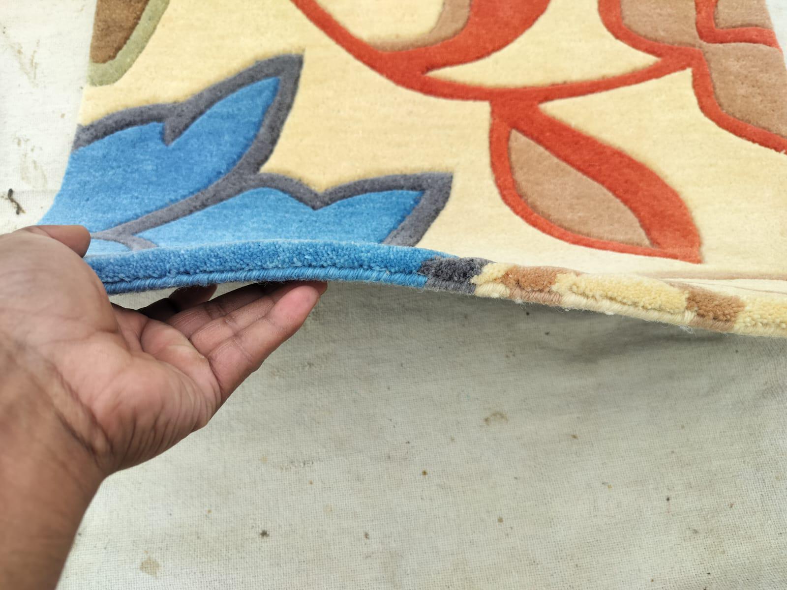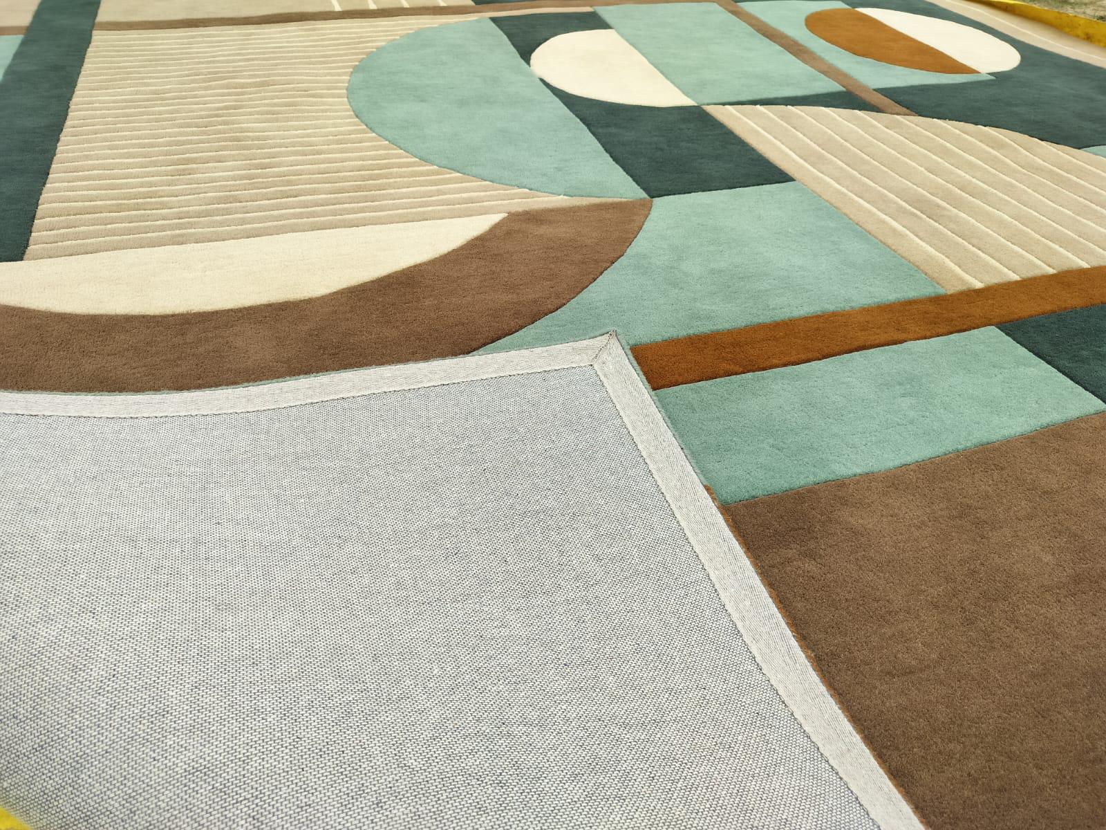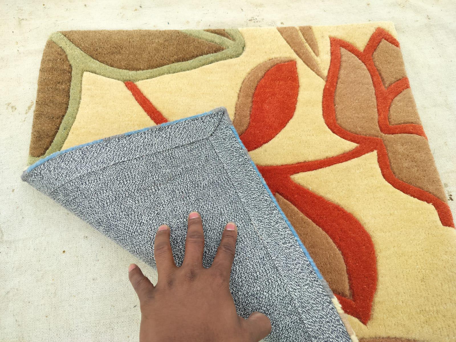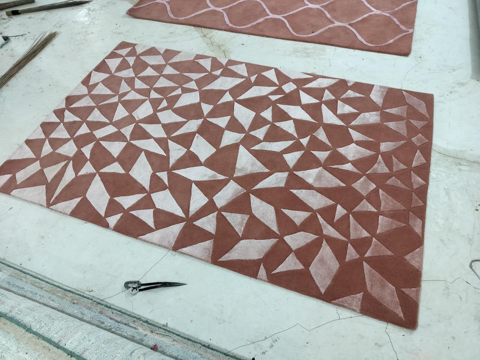 Hand-Tufted Modern Geometric Carpet. Bold lines and high-quality craftsmanship, ideal for home or office decor. backing white cloth