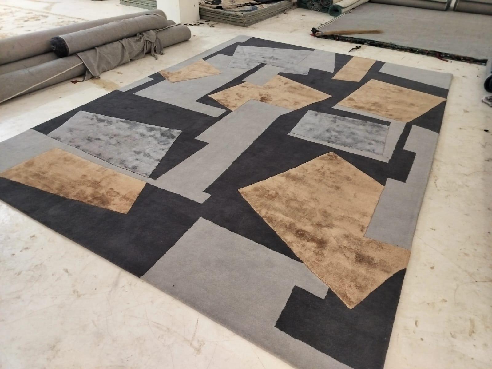 Hand-Tufted Modern Geometric Carpet. Bold lines and high-quality craftsmanship, ideal for home or office decor.
