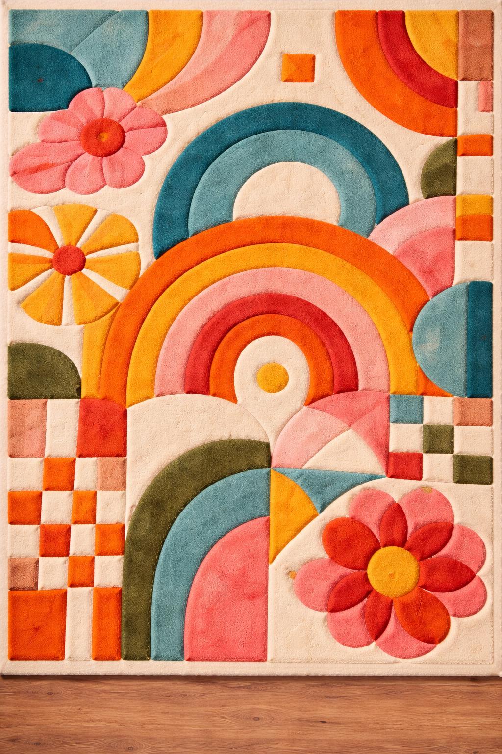 Vibrant Multi-Color Rainbow Pattern Rug. Playful and artistic hand-tufted design, perfect for adding energy to bedrooms or studios.