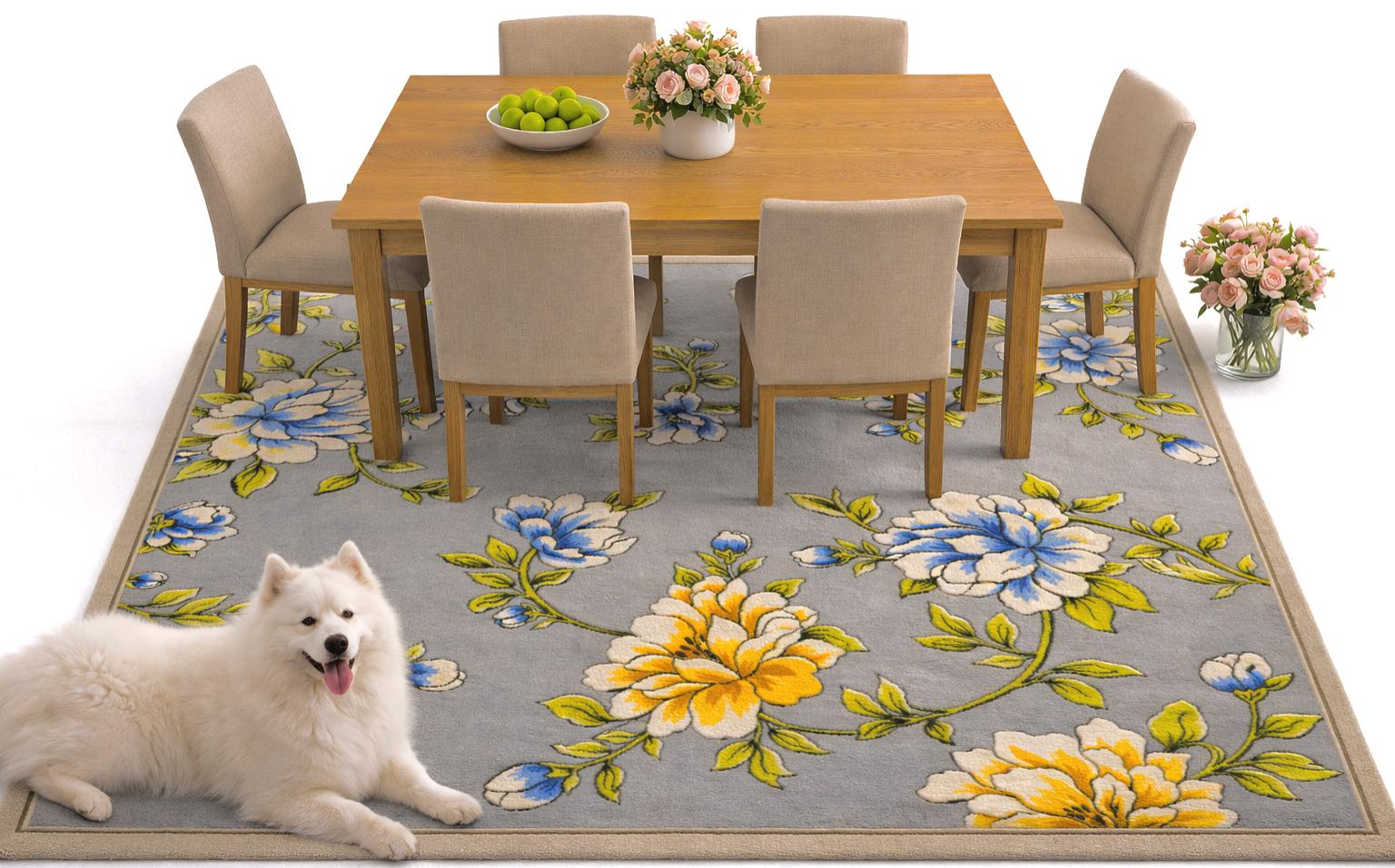 Premium Hand-Tufted Dining Room Rug. Durable and stylish, designed to complement your furniture and enhance the dining experience.