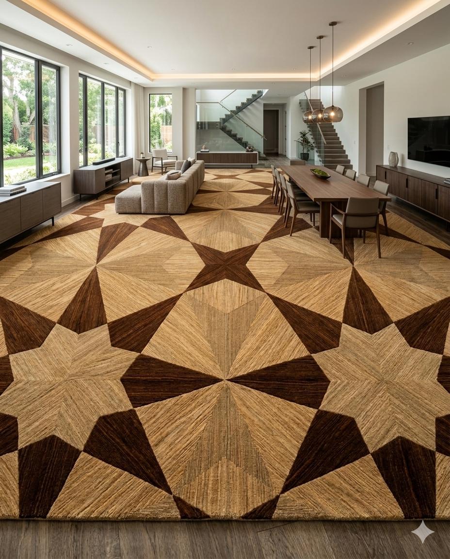 Grand Luxury Hallway Carpet. Bold geometric patterns and high-density wool for a sophisticated and high-traffic area.