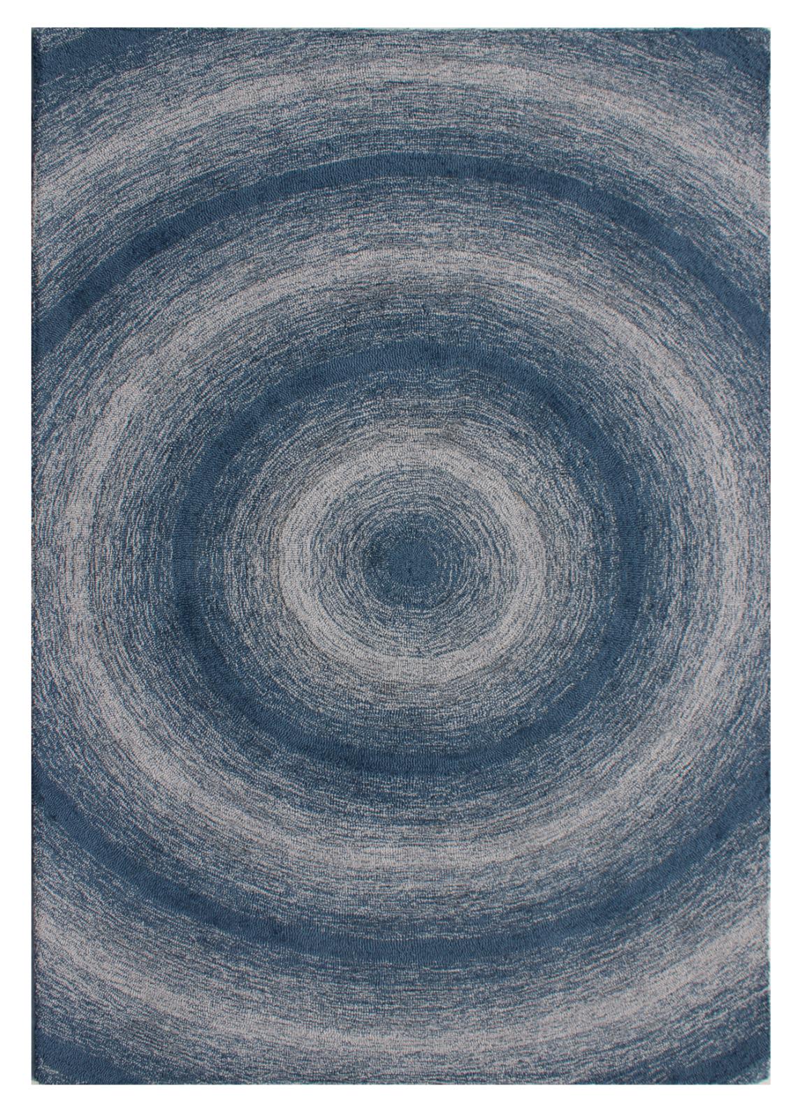 Hypnotic Blue Spiral Hand-Tufted Rug. A masterpiece of precision and texture, perfect as a focal point for any room.