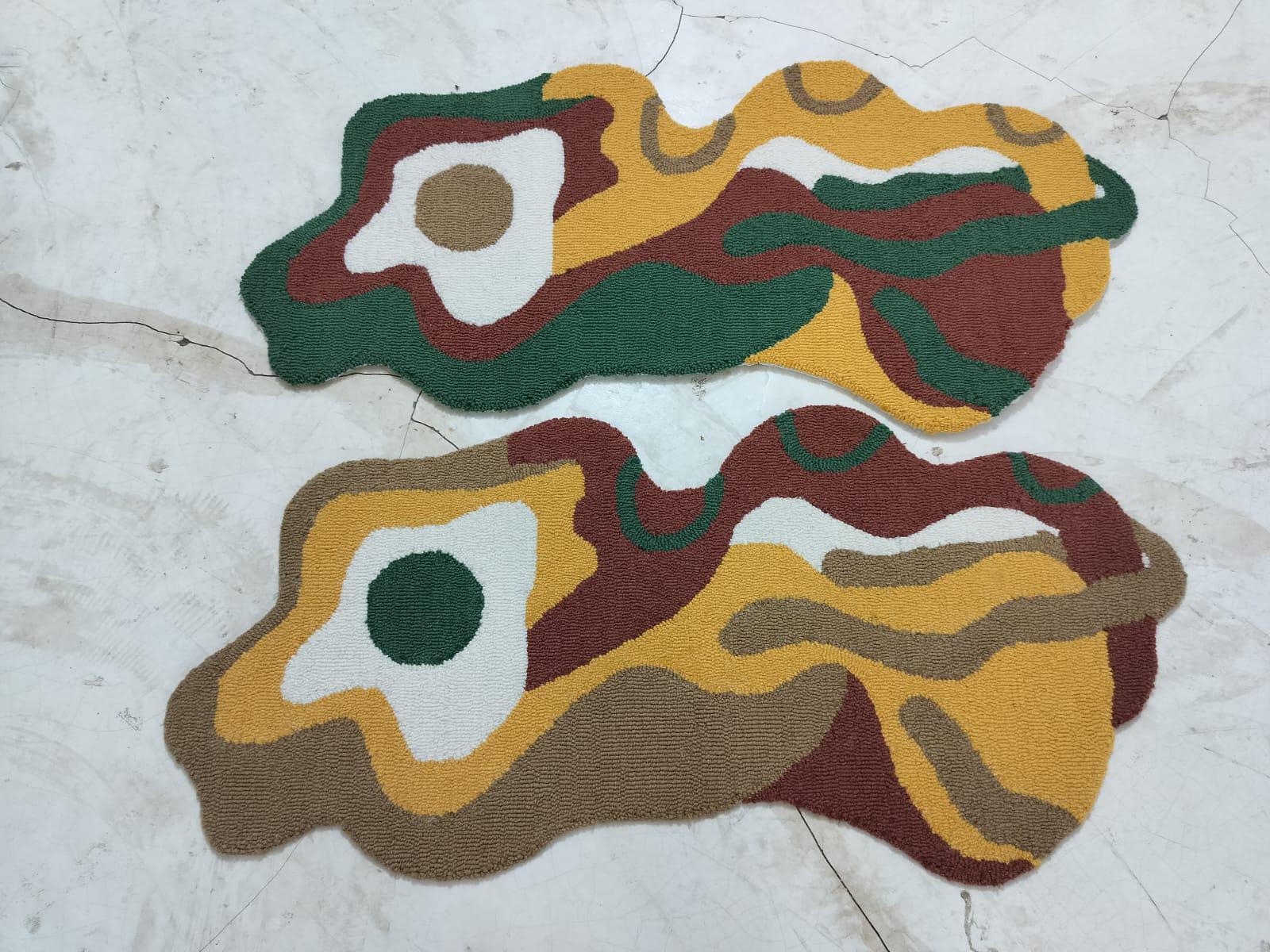 Contemporary Abstract Art Rug featuring earthy tones and hand-tufted wool. A unique statement piece for modern interiors.
